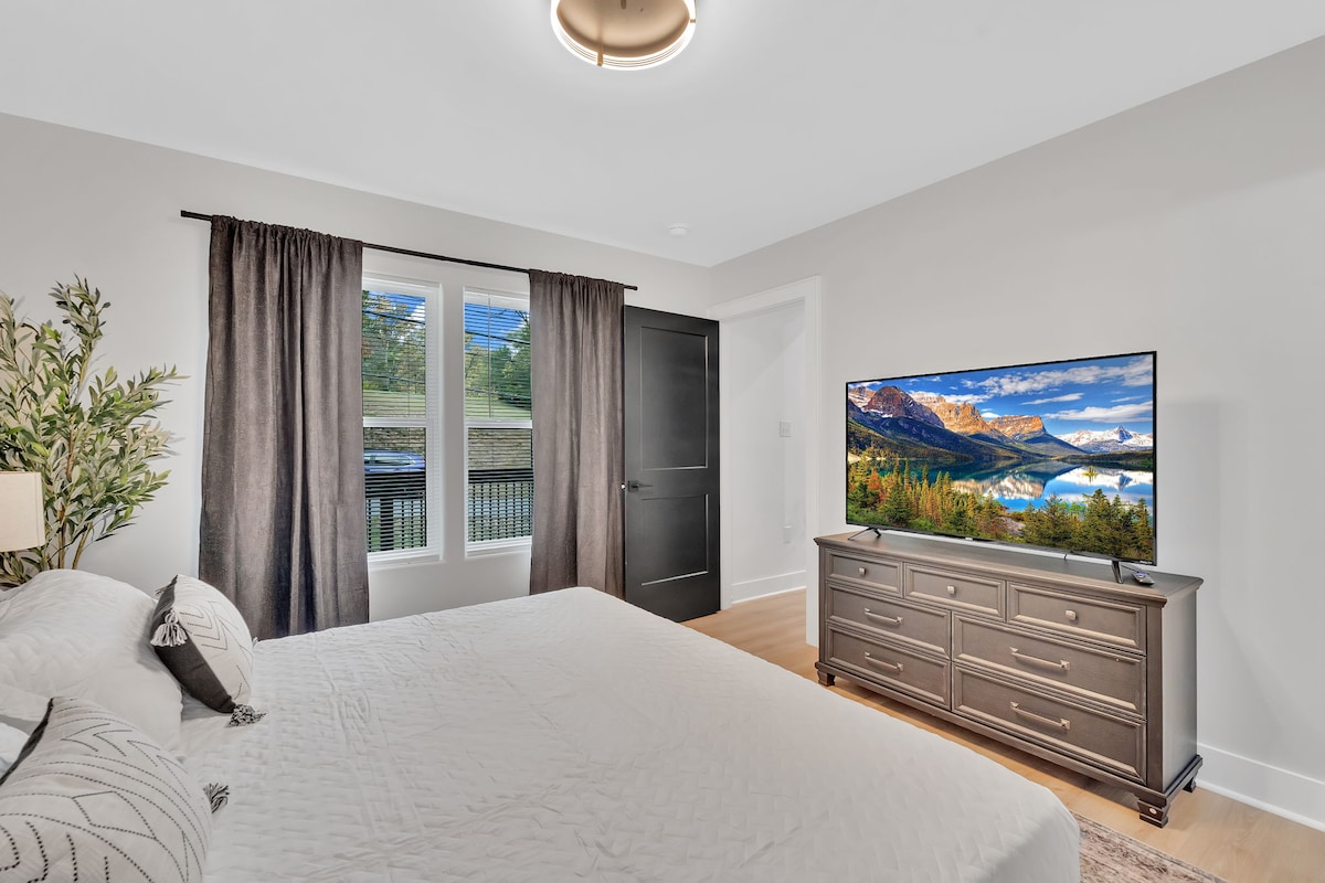 •2 bedrooms — one with a king bed and one with a queen bed, both with premium bedding and smart TVs.